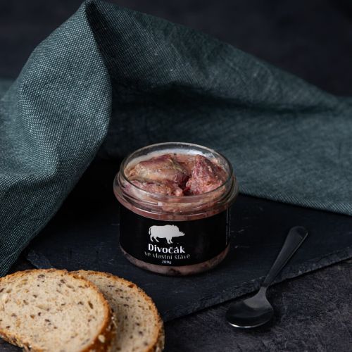 Výborné líčka z divočáka ve vlastní šťávě, 200 g, sklo/ksVšechny naše produkty jsou z kvalitních ...